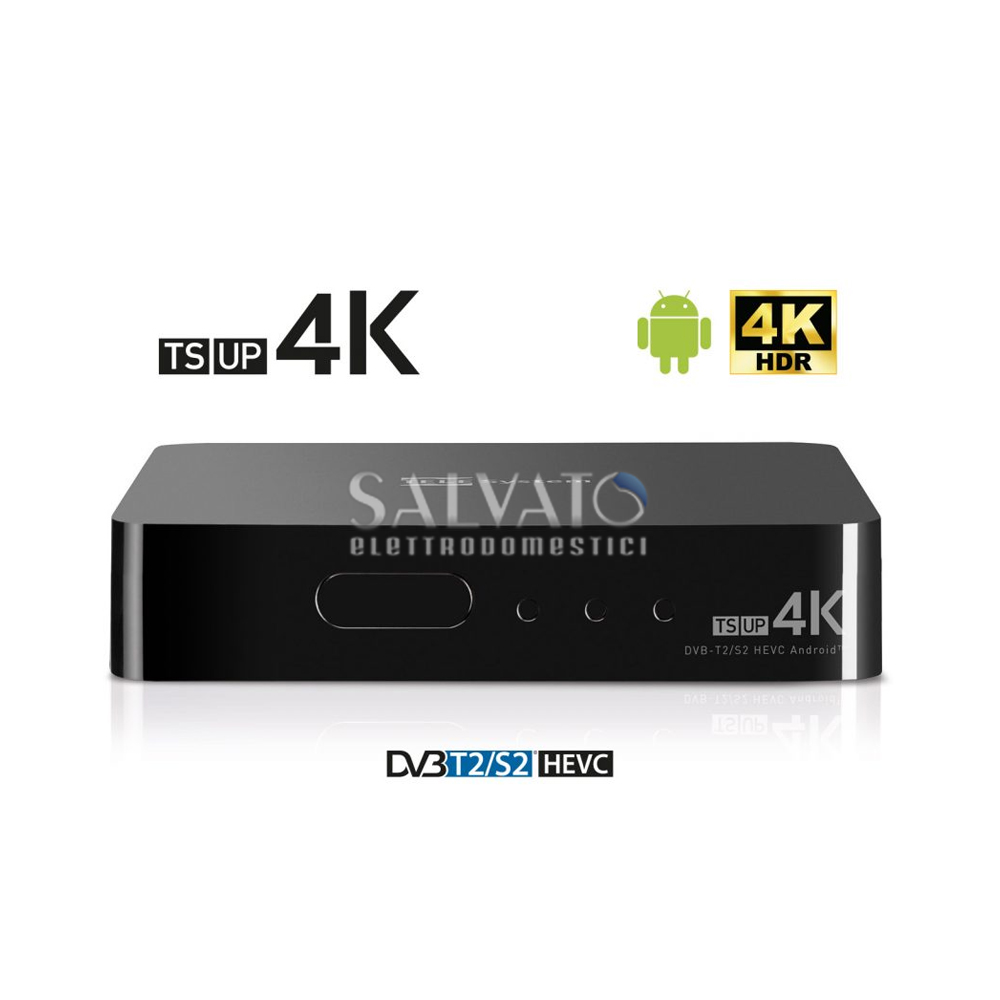 Smartbox innovativo TS UP 4K, che unisce digitale terrestre, satellite e smart TV.